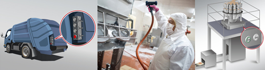 例如:乘車前往某處時, 你會看到, 加油站的油泵上通常設(shè)有可選擇汽油品號的按鈕。如果是現(xiàn)代電動汽車 (EV), 你會發(fā)現(xiàn), 充電站也設(shè)有若干按鈕, 用于輸入指令并開啟/ 停止充電過程。在服務(wù)站為輪胎充氣、清洗或打掃我們的愛車時, 都需要用到基于按鈕的人機界面設(shè)備。即使不開車, 而是坐火車出行, 我們也會看到更多的, 種類更繁多的按鈕;例如, 打開車門、上衛(wèi)生間或使用對講設(shè)備時, 都要用到按鈕。買票的時候, 售票機也可能裝有堅固耐用的人機界面。到達目的地以后, 我們可能需要一些現(xiàn)金, 這時你會發(fā)現(xiàn), 自動取款機也設(shè)有高強度鍵盤, 以有效防止損壞。我們要前往的建筑, 可能也設(shè)有門禁或?qū)χv系統(tǒng), 進入建筑后, 電梯間也有按鈕, 以選擇樓層。