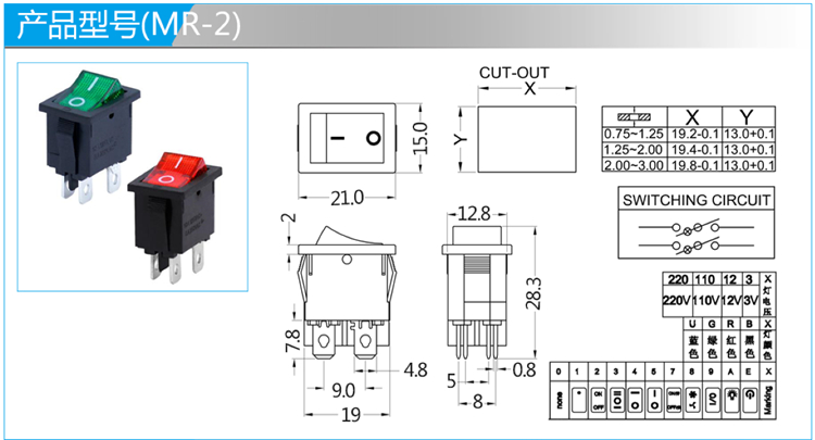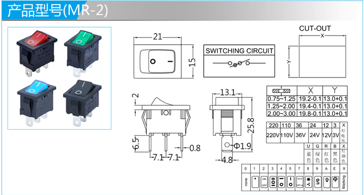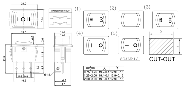 Contact Configuration: ON-OFF ON-OFF-ON ON-ON