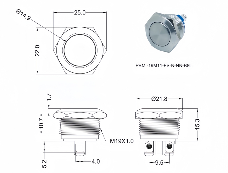 MATERIALS BUSHING : Stainless Steel / Nickel plated brass / Aluminum alloy BASE : PBT. ACTUATOR : Stainless Steel / Nickel plated brass / Aluminum alloy INNER ASSEMBLY : POM / PA66. SPRING : Spring steel. SEALING : Sillicone. O-Ring : Sillicone TERMINAL : Brass,with silver or gold plated. HEX NUT : Nickel plated brass |