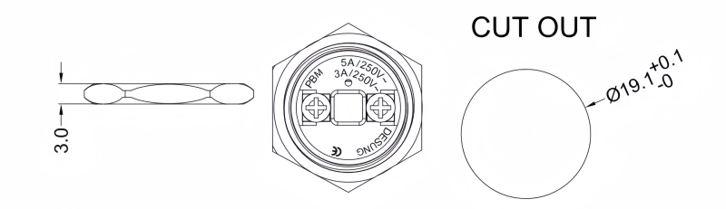 Contact Rating: lth 5A/250VAC resistive load 3A/250VAC Electrical Life: 50,000 make-and-break cycles at full load Torque: 5~14Nm Travel: About 2.0mm