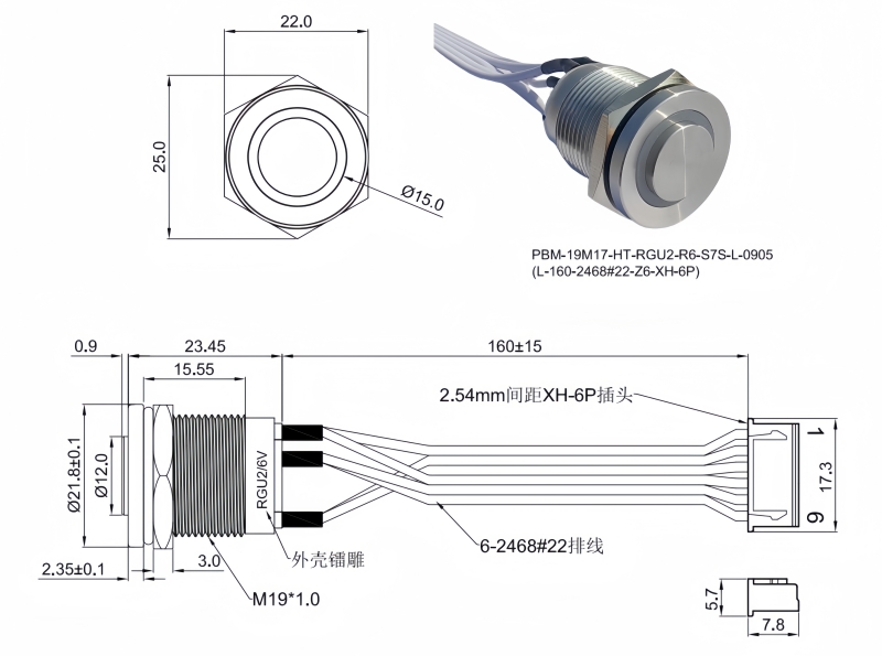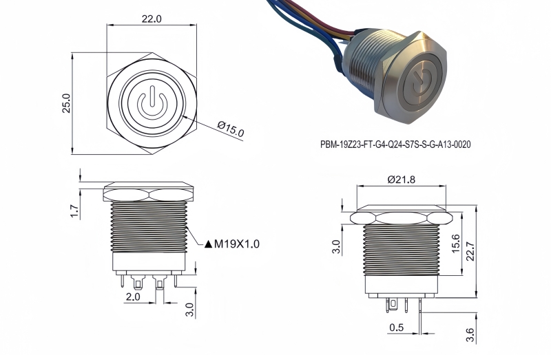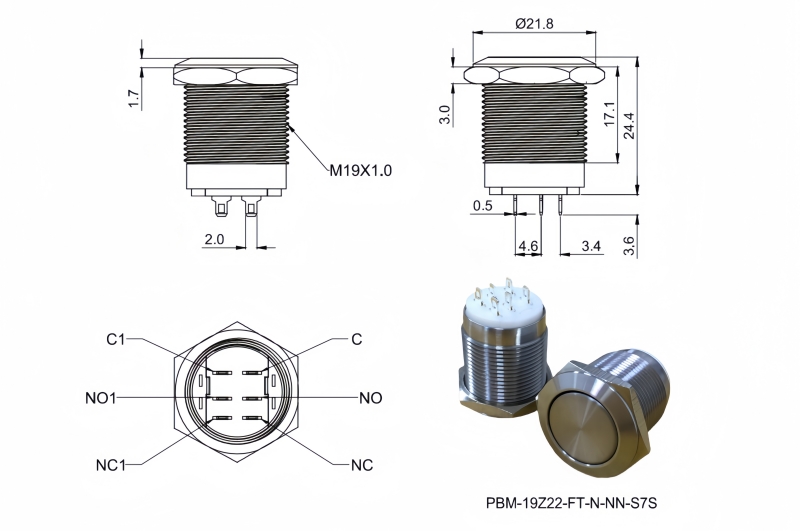 19mm短款金屬按鈕開關(guān)