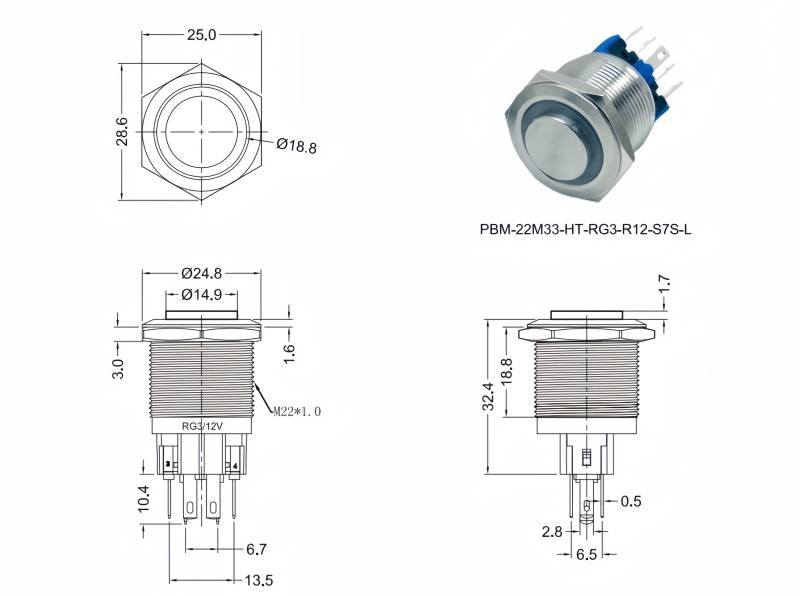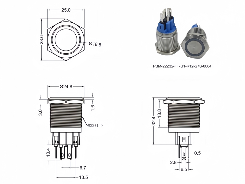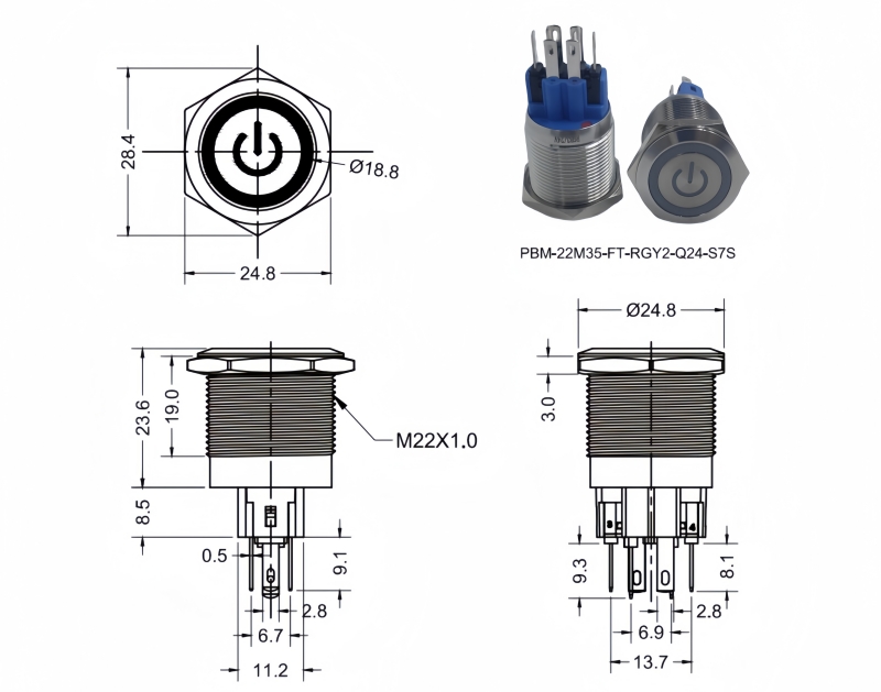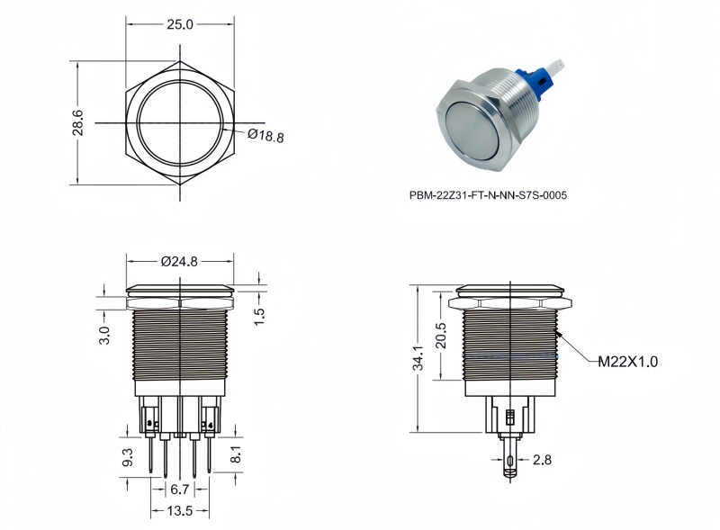 Metal Pushbutton Switches / PBM-22 Series