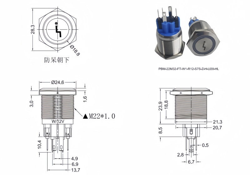22mm金屬按鈕開(kāi)關(guān)IP67