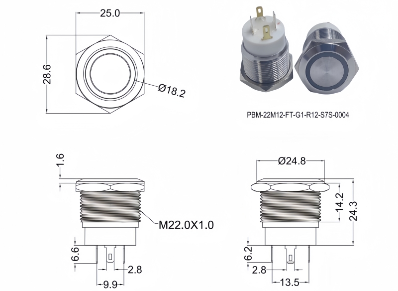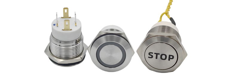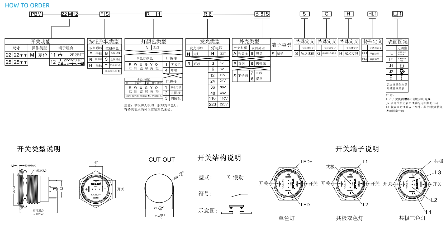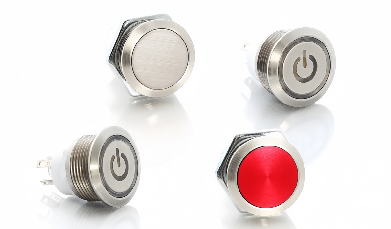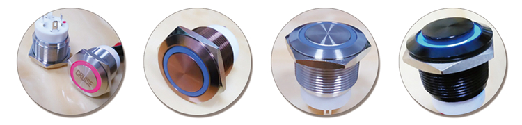 MATERIALS BUSHING : Stainless Steel / Nickel plated brass / Aluminum alloy BASE : PBT, PC ACTUATOR : PC ; Stainless Steel / Nickel plated brass / Aluminum alloy INNER ASSEMBLY : POM / PA66. SPRING : Spring steel. SEALING : Sillicone. O-Ring : Sillicone TERMINAL : Brass,with silver or gold plated. HEX NUT : Nickel plated brass