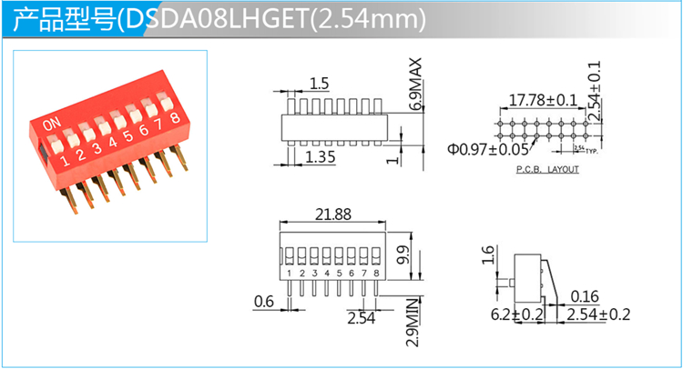 Features Side actuation Gold contact for high reliability Red,blue,and black color options