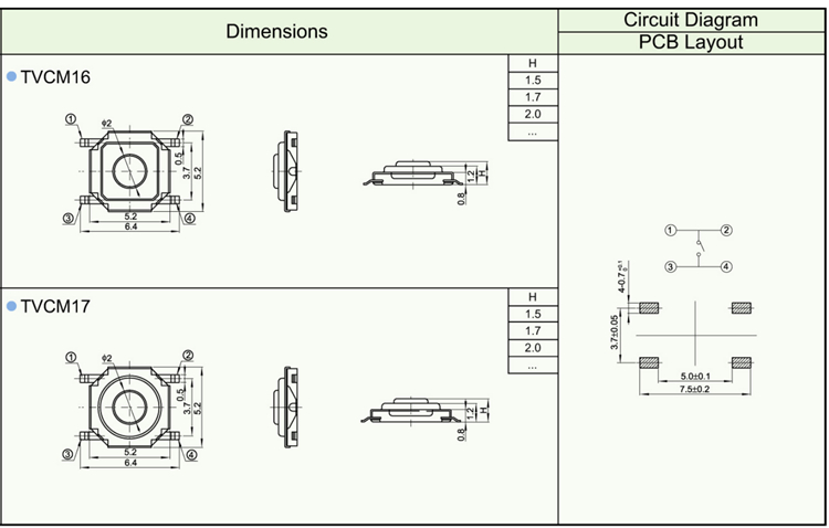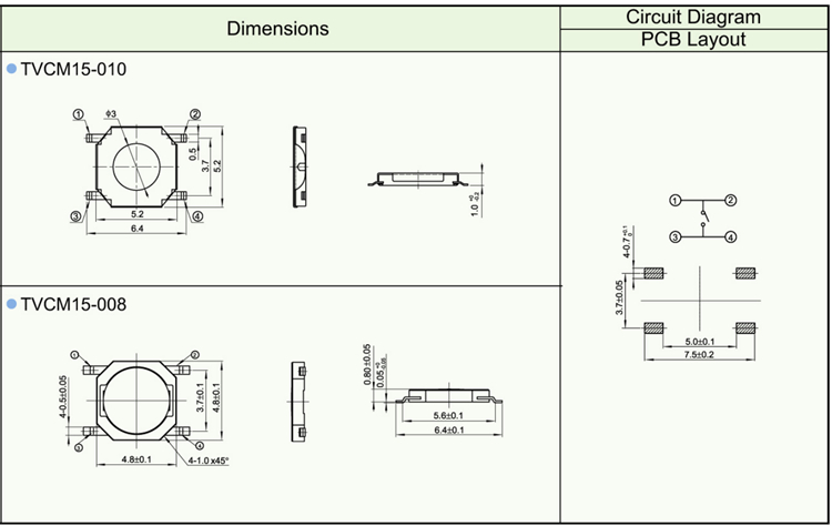 Features ※ Improve mounting density of components on PC board. ※ Reflow solderable ※ Sharp “click” feel with a positive tacile feedback ※ Packaged with a 12mm wide embossed taping.