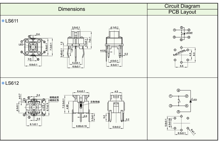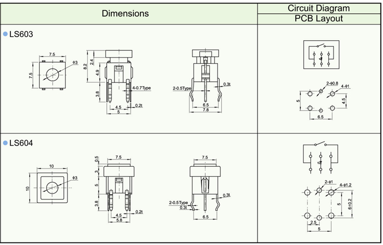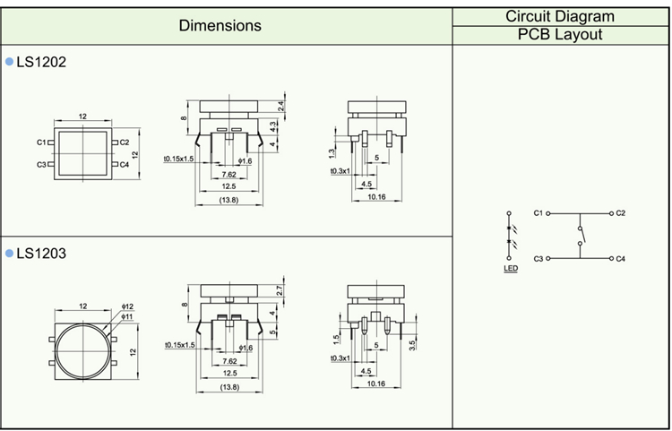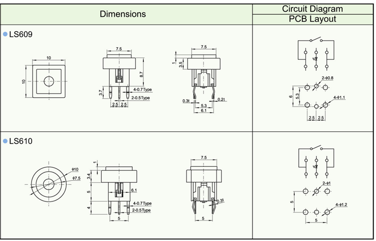 Features ※ Improve mounting density of components on PC board. ※ Reflow solderable ※ Sharp “click” feel with a positive tacile feedback ※ Packaged with a 12mm wide embossed taping.