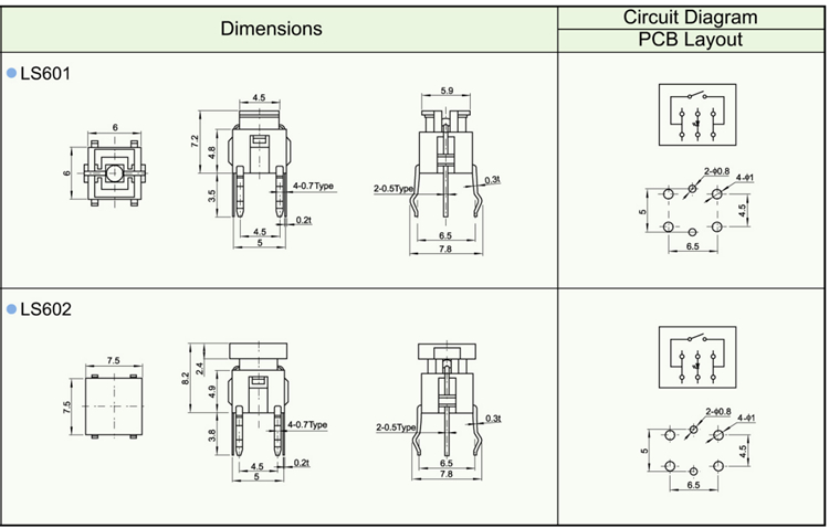 Tact Switches / LS Series SAFETY/QUALITY APPROVALS ROHS