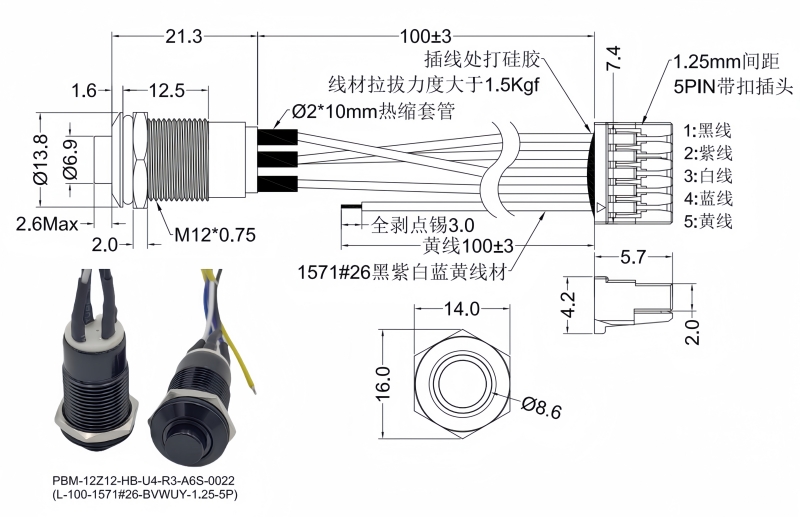 MATERIALS BUSHING : Stainless Steel / Nickel plated brass / Aluminum alloy BASE : PBT, PC ACTUATOR : PC ; Stainless Steel / Nickel plated brass / Aluminum alloy INNER ASSEMBLY : POM / PA66. SPRING : Spring steel. SEALING : Sillicone. O-Ring : Sillicone TERMINAL : Brass,with silver or gold plated. HEX NUT : Nickel plated brass