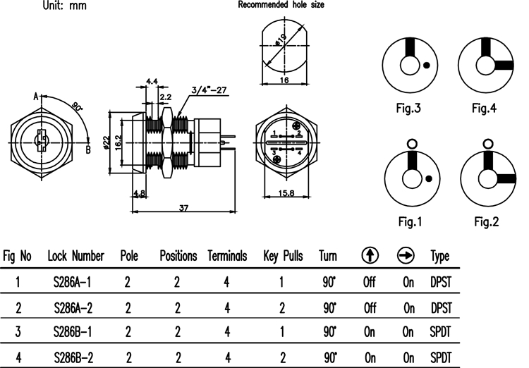 Contact Rating: 4A 125VAC,2A 250VAC Electrical Life: 50,000 cycles