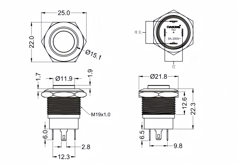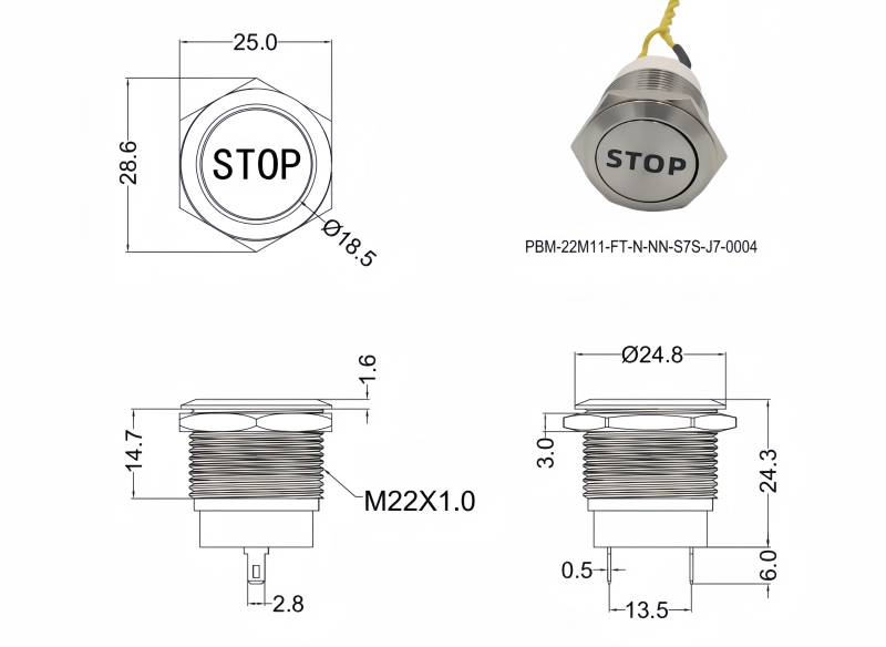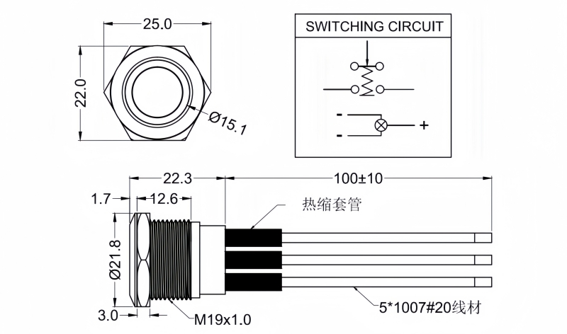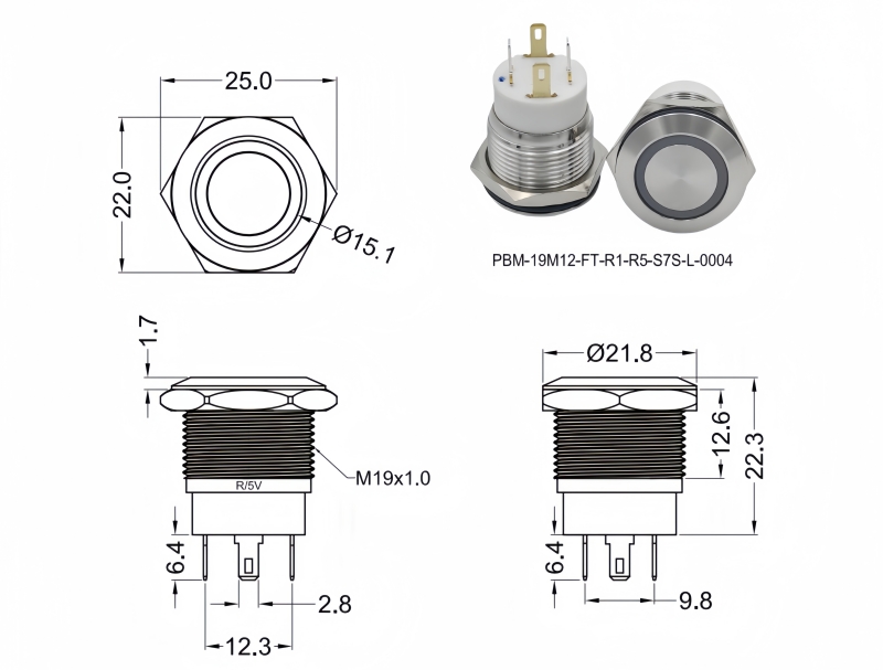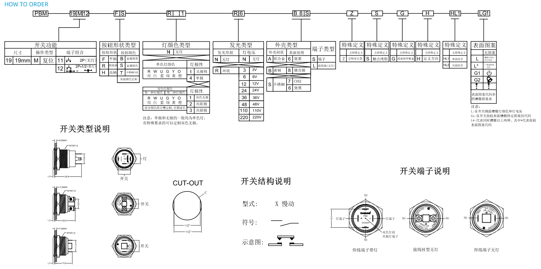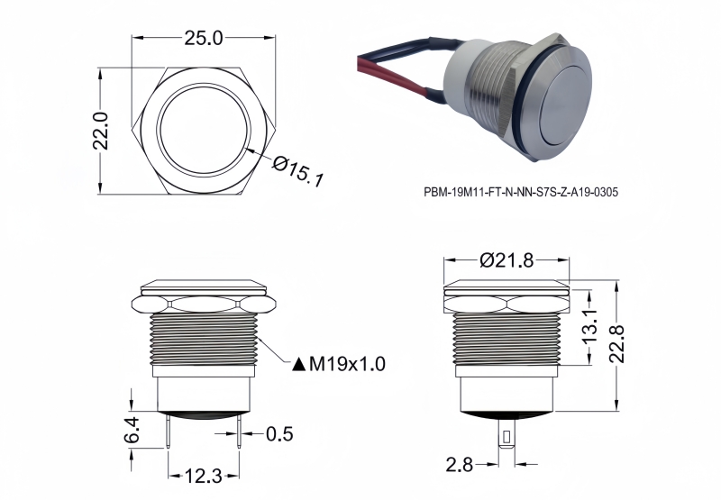 Panel Thickness: Ø19.20mm Function:(ON)-OFF Momentary