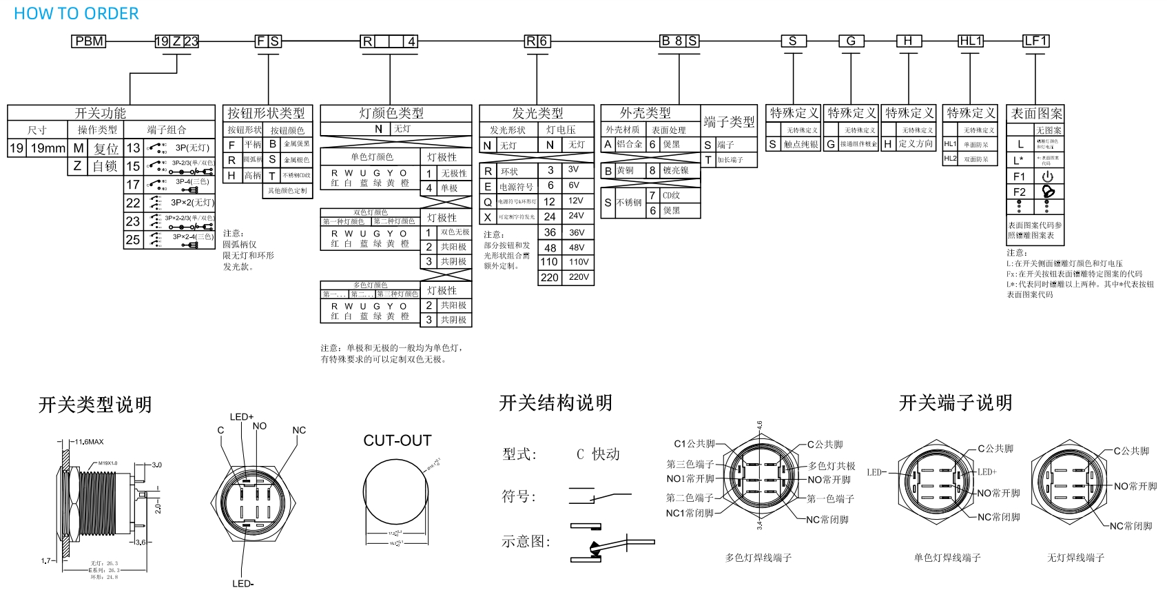 Metal Pushbutton Switches / PBM-19 Series SAFETY/QUALITY APPROVALS TUV/CE/CQC/IP68/ROHS