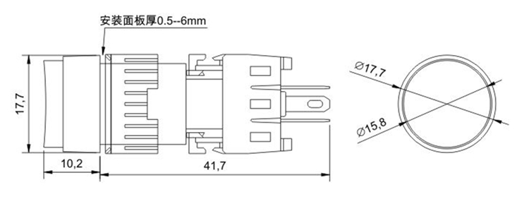 SPECIFICATIONS Panel Thickness: Ø16.20mm Contact Rating: 6A 250VAC/440V Mechanical Life: Momentary 50,000 cycles Self-lock 20,000 cycles Electrical Life: 10,000 cycles make-and-break cycles. Torque: 3~8Nm Travel: About 2.0mm