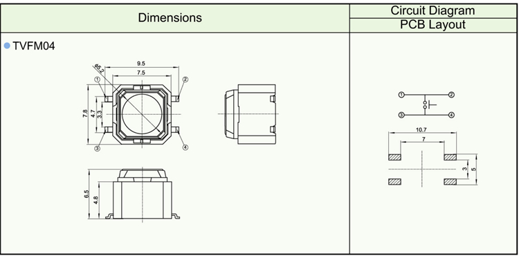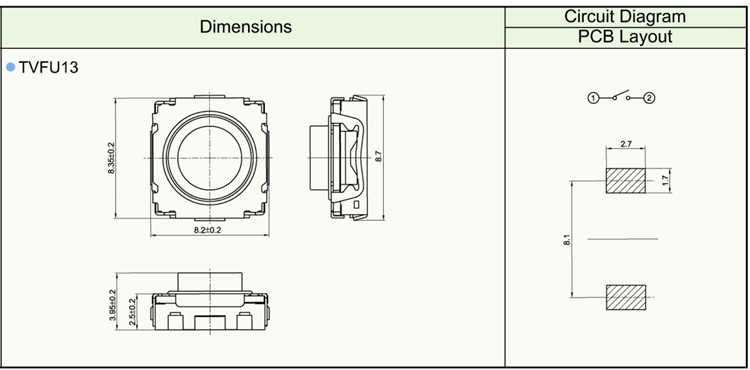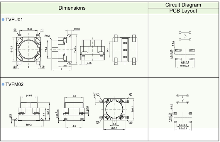 Features ※ Improve mounting density of components on PC board. ※ Reflow solderable ※ Sharp “click” feel with a positive tacile feedback ※ Packaged with a 12mm wide embossed taping.
