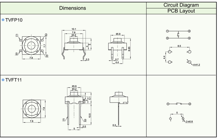 Tact Switches / TVF Series SAFETY/QUALITY APPROVALS ROHS
