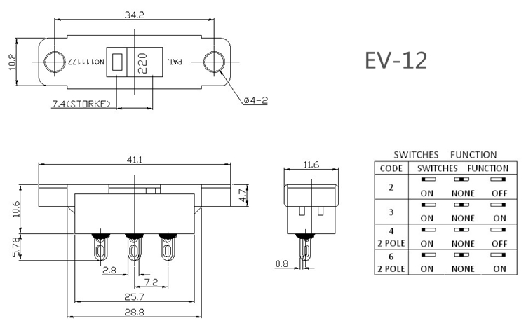 Contact Rating: 12A 125/250V AC Electrical Life: 10,000 cycles