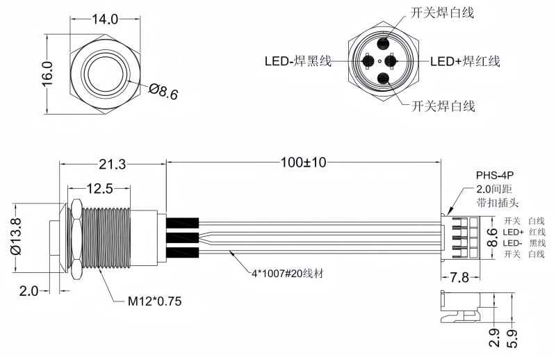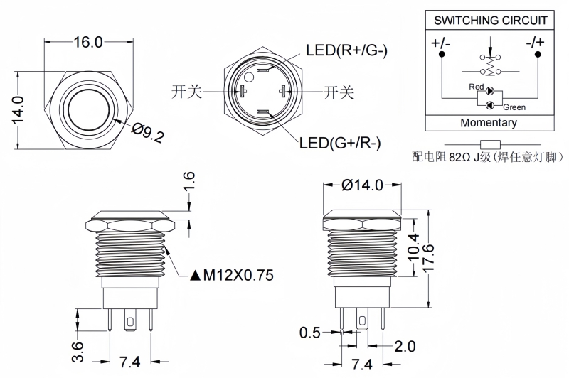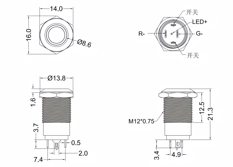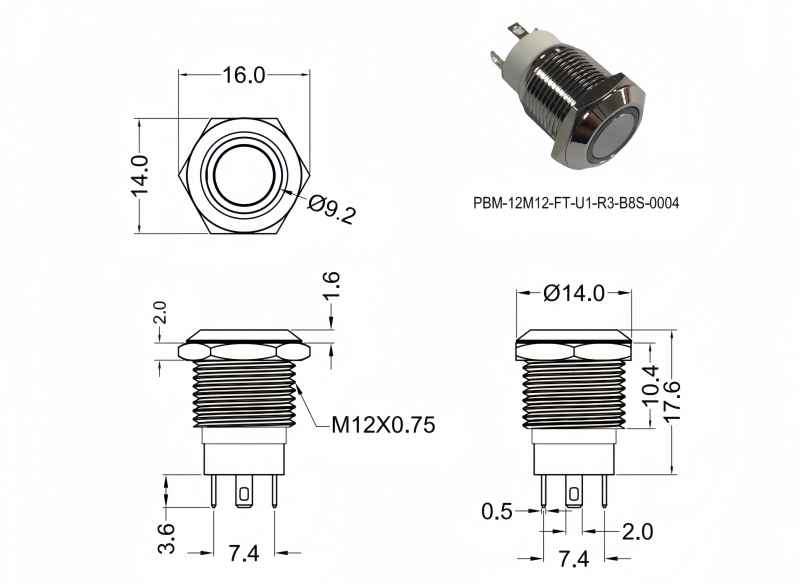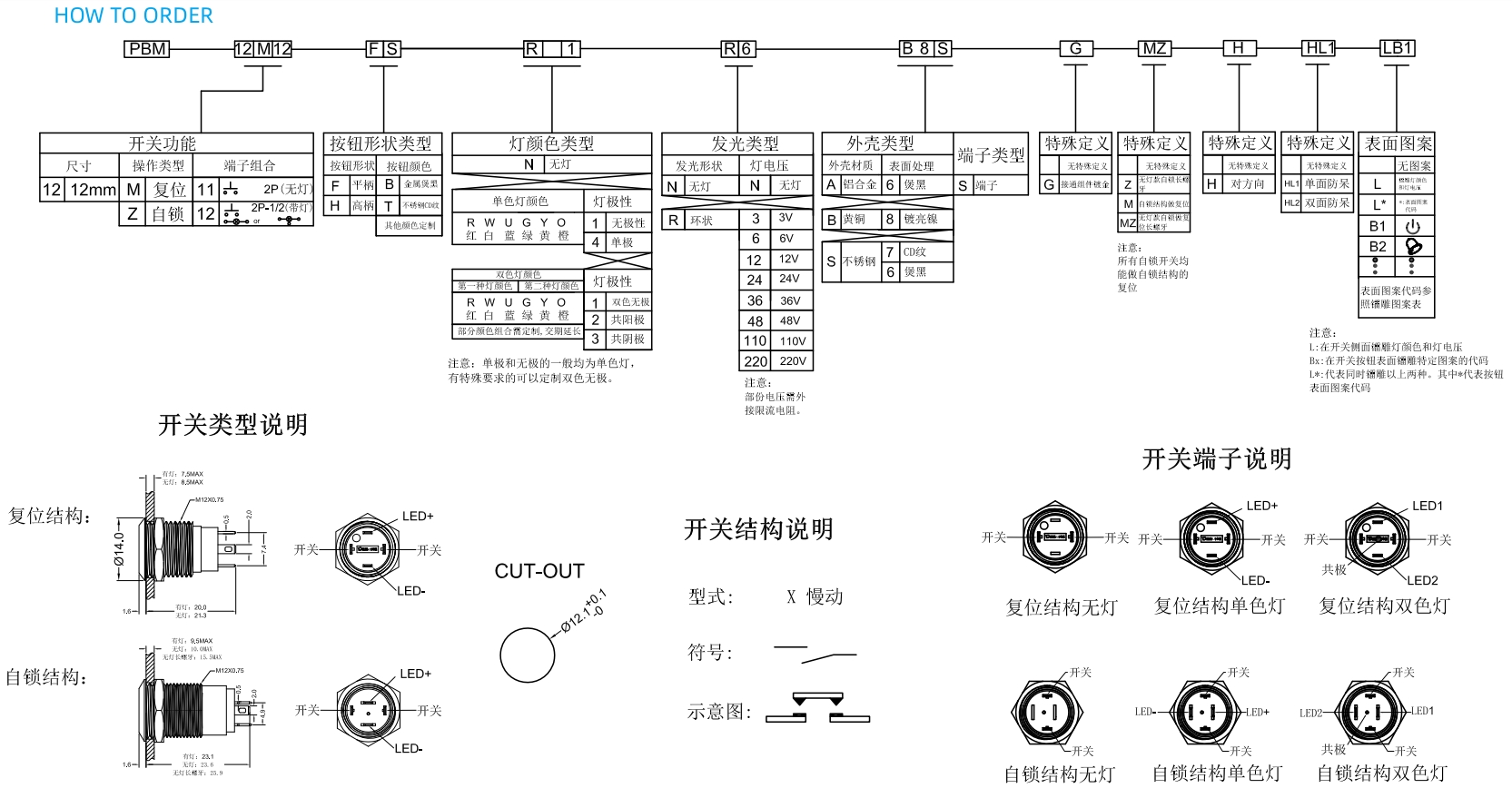 12mm復(fù)位金屬按鈕開(kāi)關(guān)