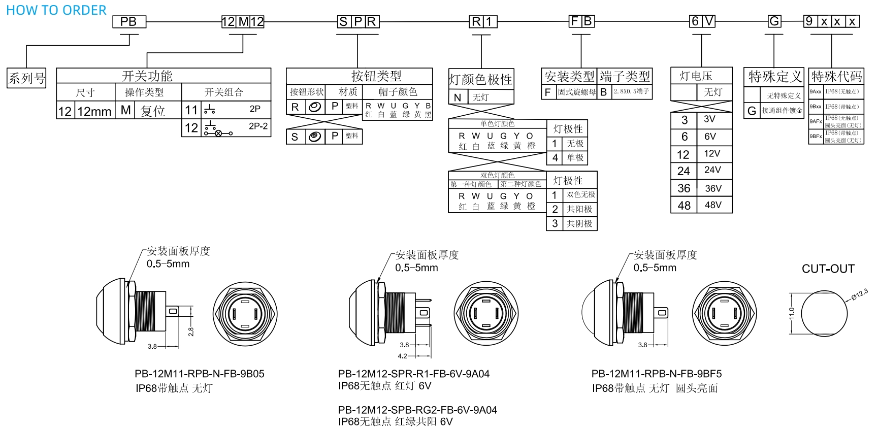 12mm Pushbutton Switches/PB-12M Series SAFETY/QUALITY APPROVALS TUV:IP68/ROHS