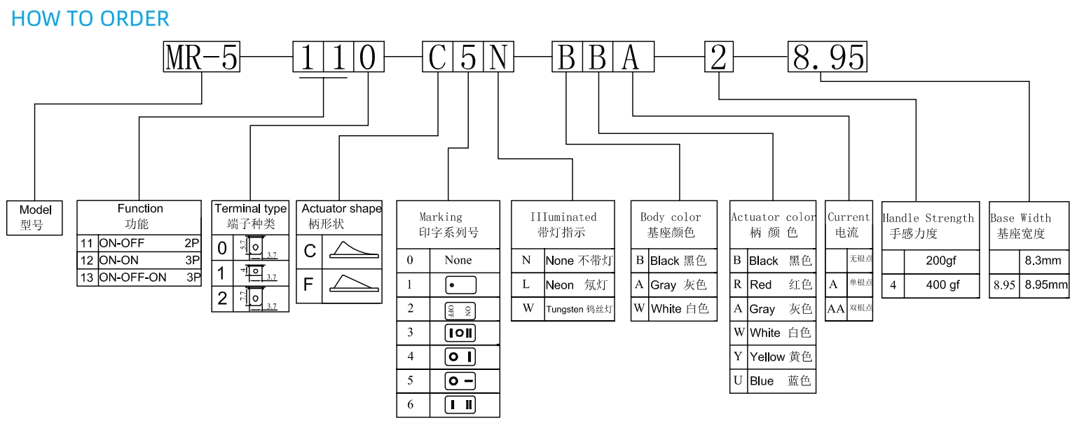 Contact Configuration: ON-OFF ON-OFF-ON ON-ON