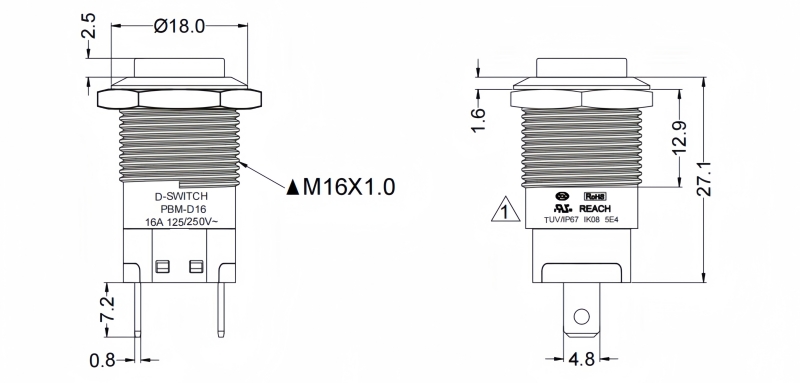 Metal Pushbutton Switches / 16A PBM-D16 Series