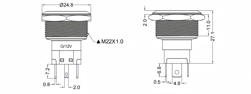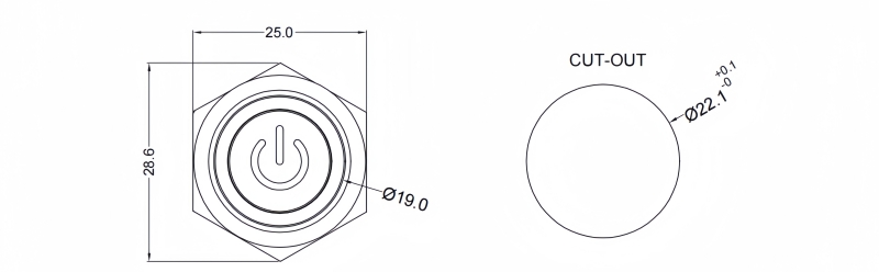 Function:ON-OFF Latching (ON)-OFF Momentary