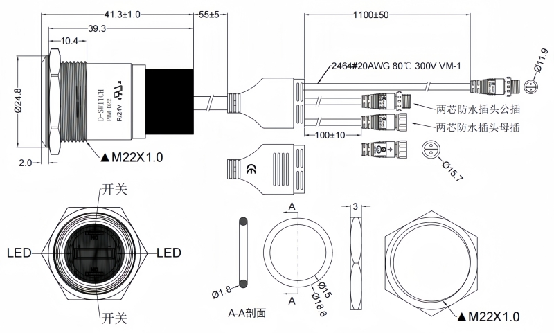 Mechanical Life: Momentary 100,000 cycles Self-lock 50,000 cycles
