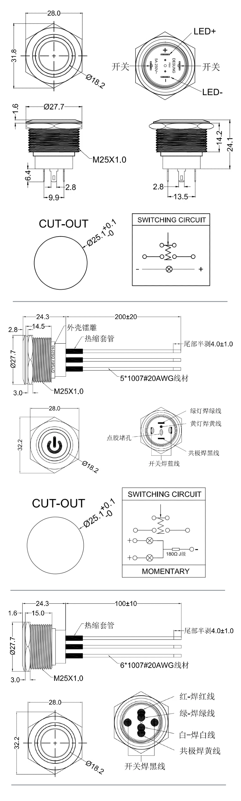 25mm復位金屬按鈕開關(guān)