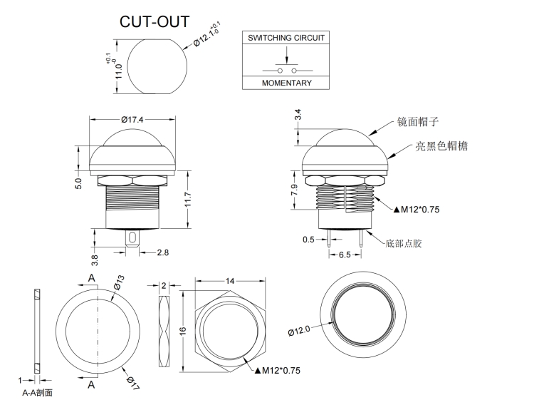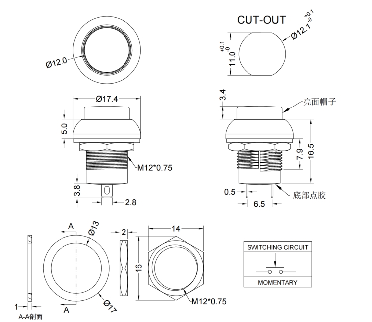 12mm Pushbutton Switches/PB-12M Series