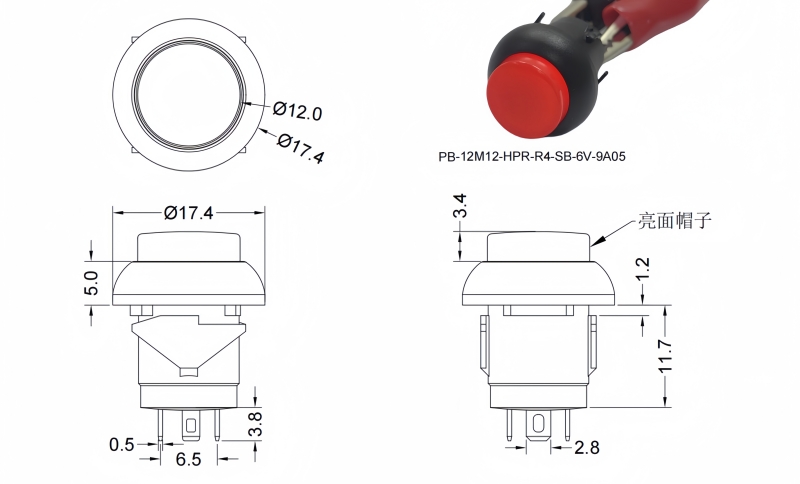 Function:ON-OFF Latching or (ON)-OFF Momentary