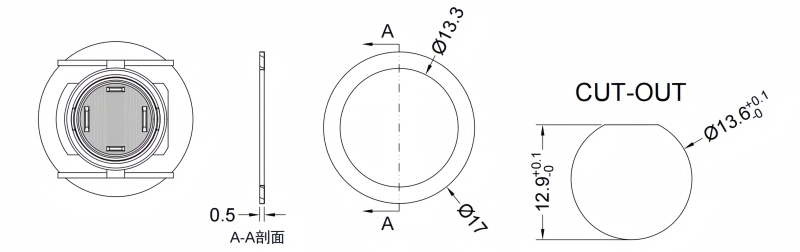Panel Thickness: Ø12.30mm(Nut fixation); Ø13.60mm(Ear fixation);